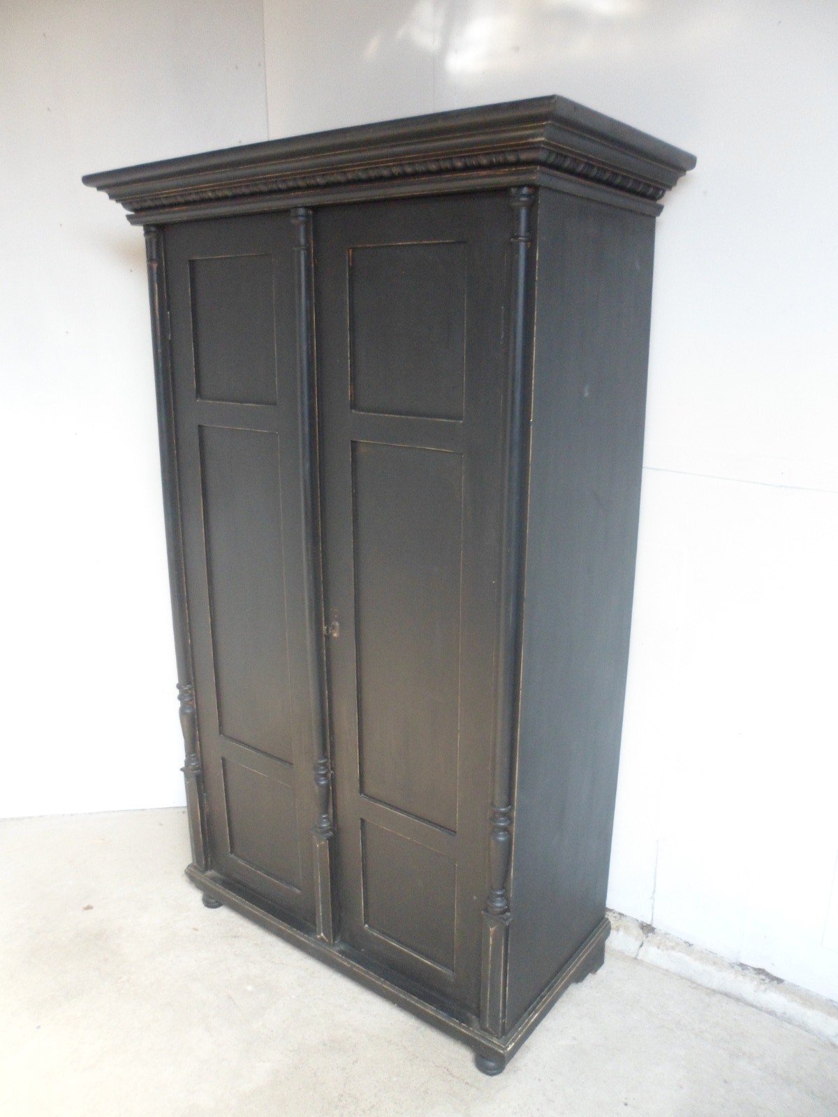 Lovely Victorian Antique Pine Painted Black 1 Piece Linen / Hall Wardrobe
