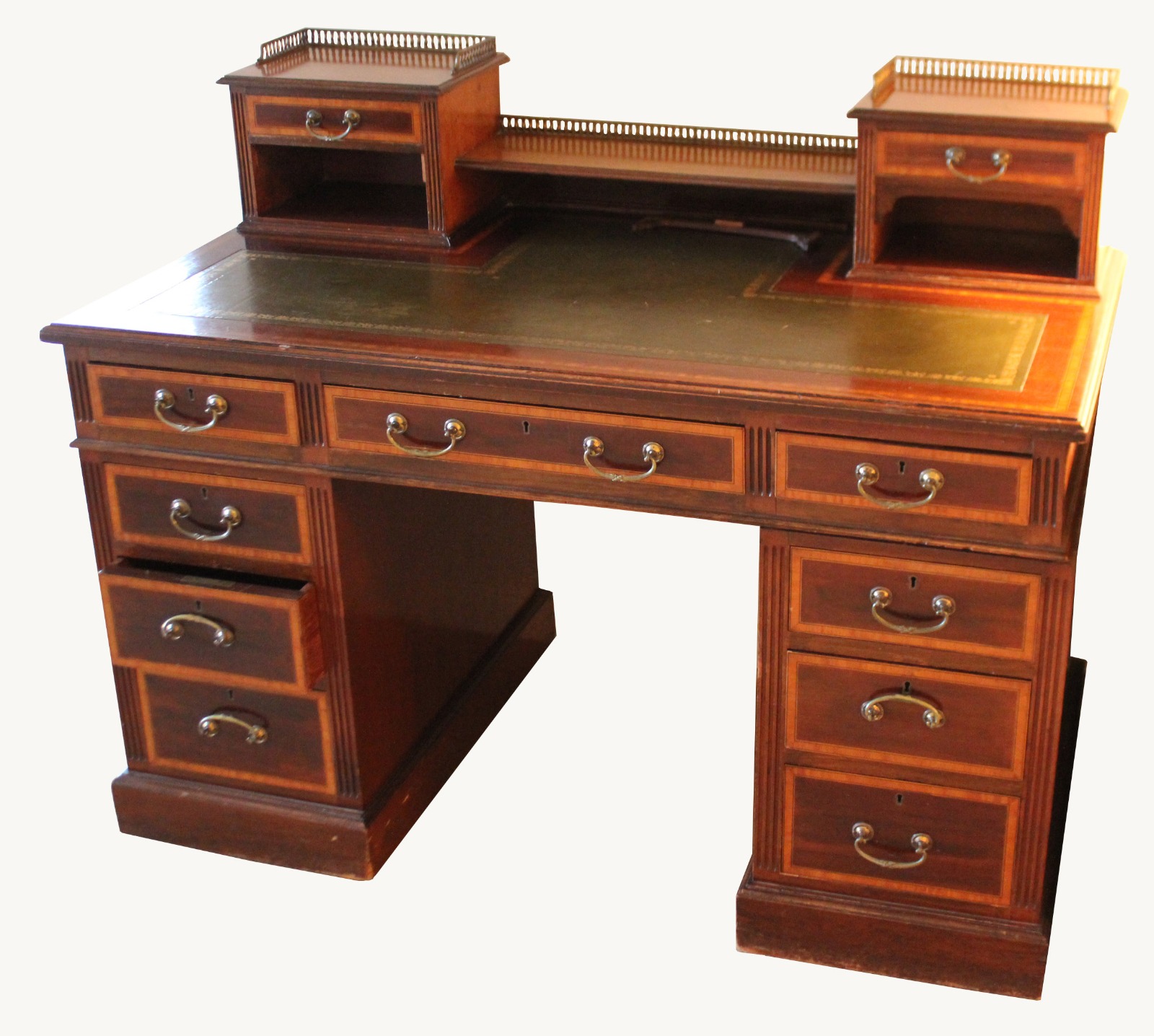Lovely Victorian Mahogany & Satinwood Banded Bankers Desk