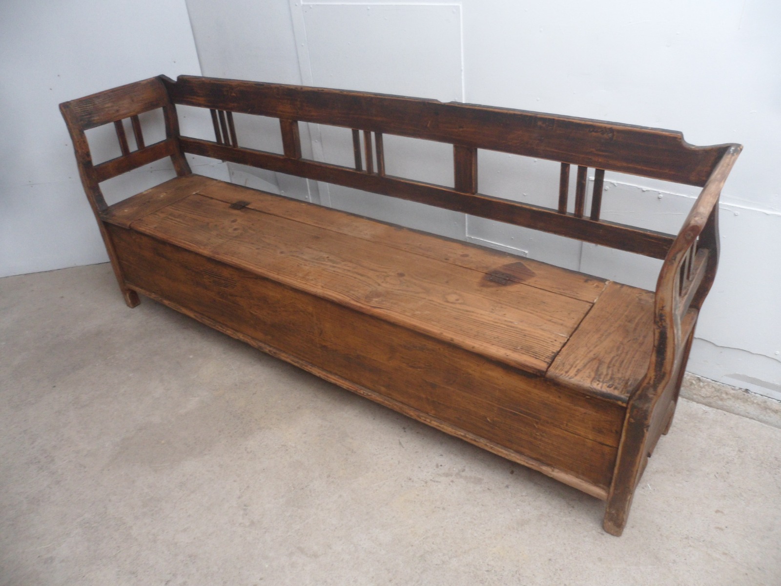 Lovely Victorian Originally Painted Antique Pine Kitchen Box / Settle / Bench