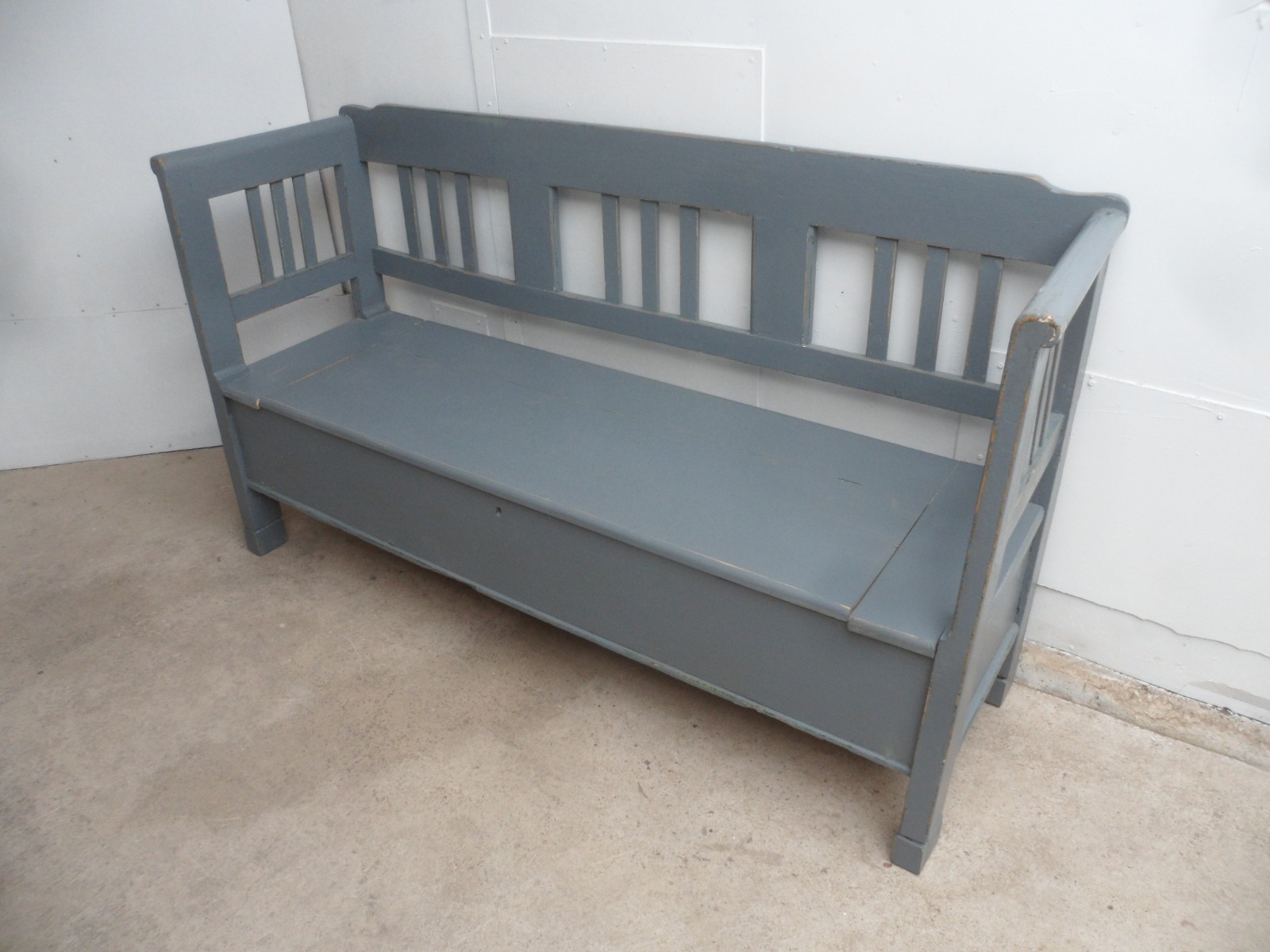Lovely Victorian Painted Light Grey Antique Pine Kitchen Box / Settle / Bench