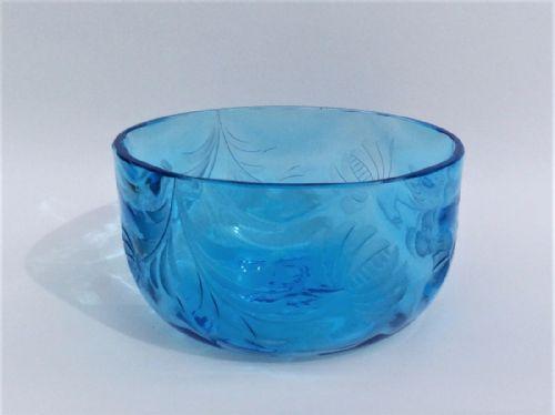 Lovely Victorian Petrol Blue Cut & Etched Bowl