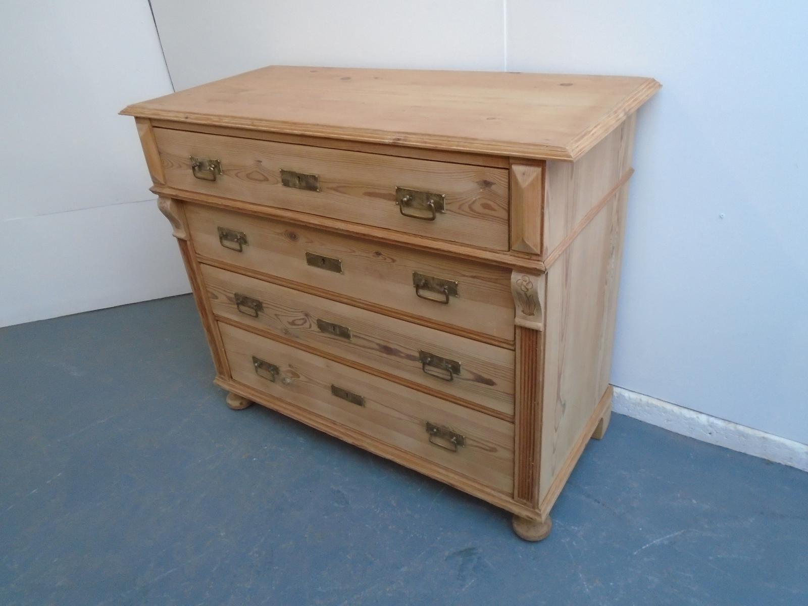 Lovely Victorian Reeded Antique Pine 4 Drawer Chest of Drawers to paint / wax