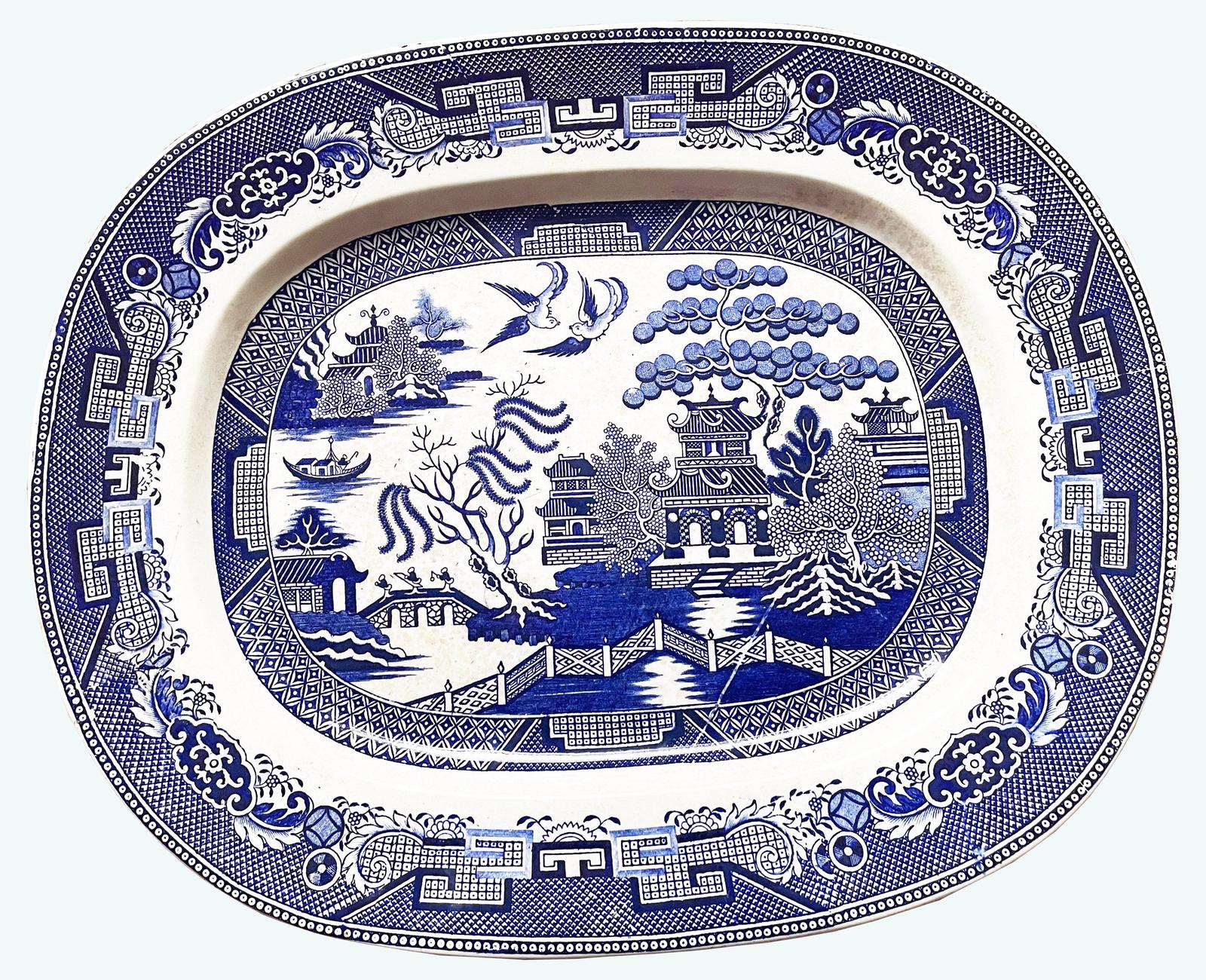 Lovely Victorian Stoneware Willow Pattern Meat Plate