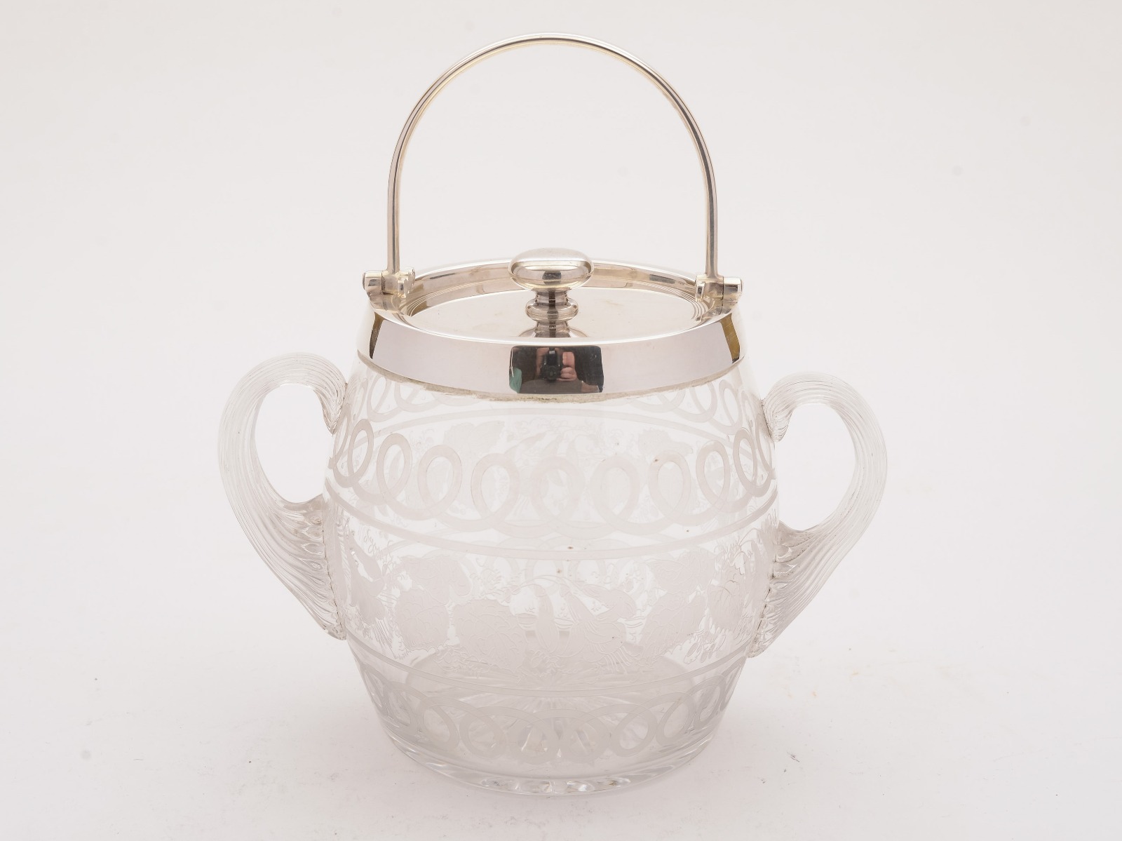 Lovely Victorian Trophy Style Glass Biscuit Box c.1890