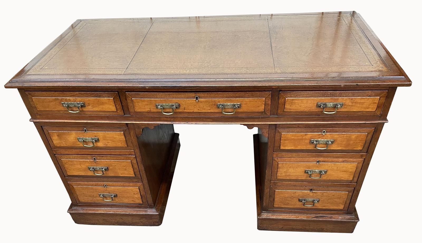 Lovely Victorian Walnut Pedestal Desk