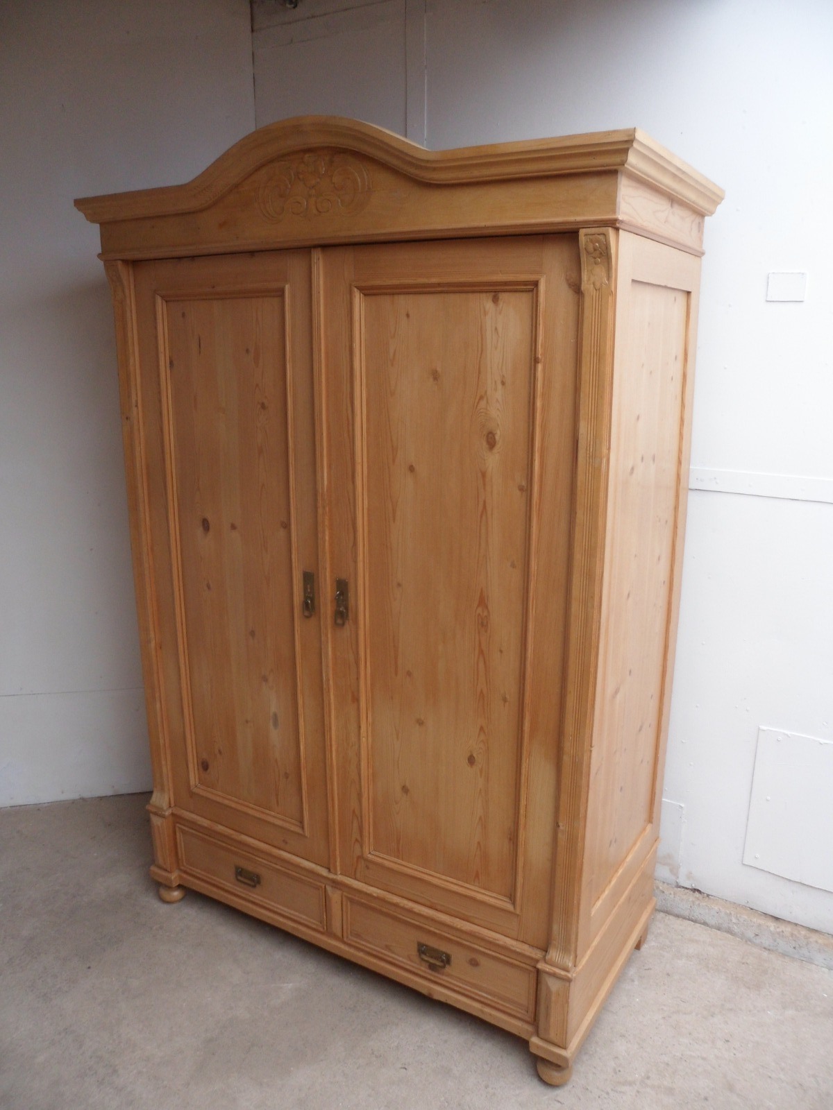 Lovely Victorian Waxed Antique Pine 2 Door 2 Drawer Knockdown Wardrobe