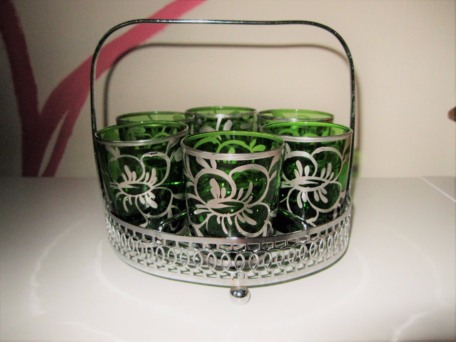 Lovely Vintage Set of 6 Shot / Liqueur Glasses with Original Stand c.1950 / 1960