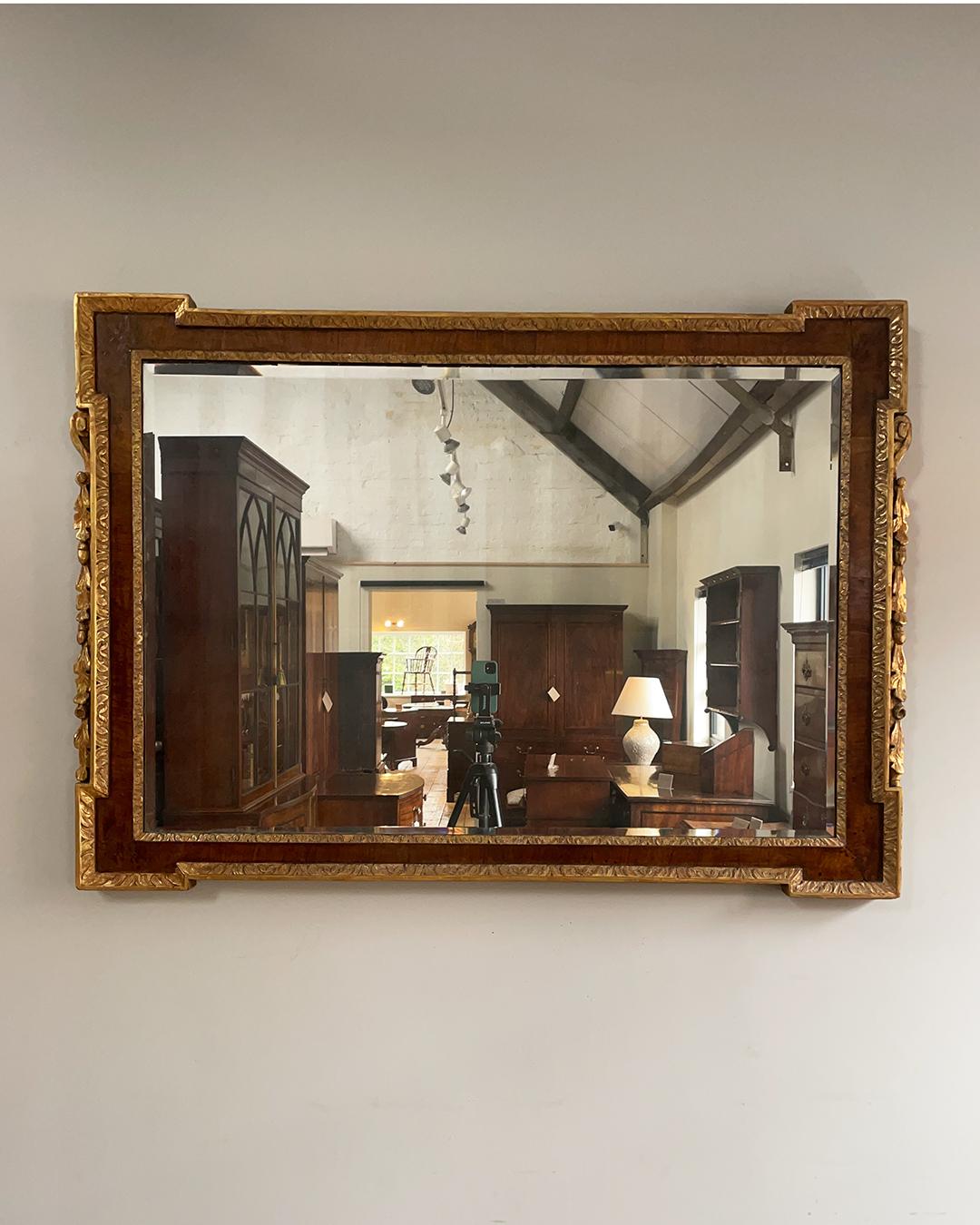 Lovely Walnut & Parcel Gilt Overmantel Mirror
