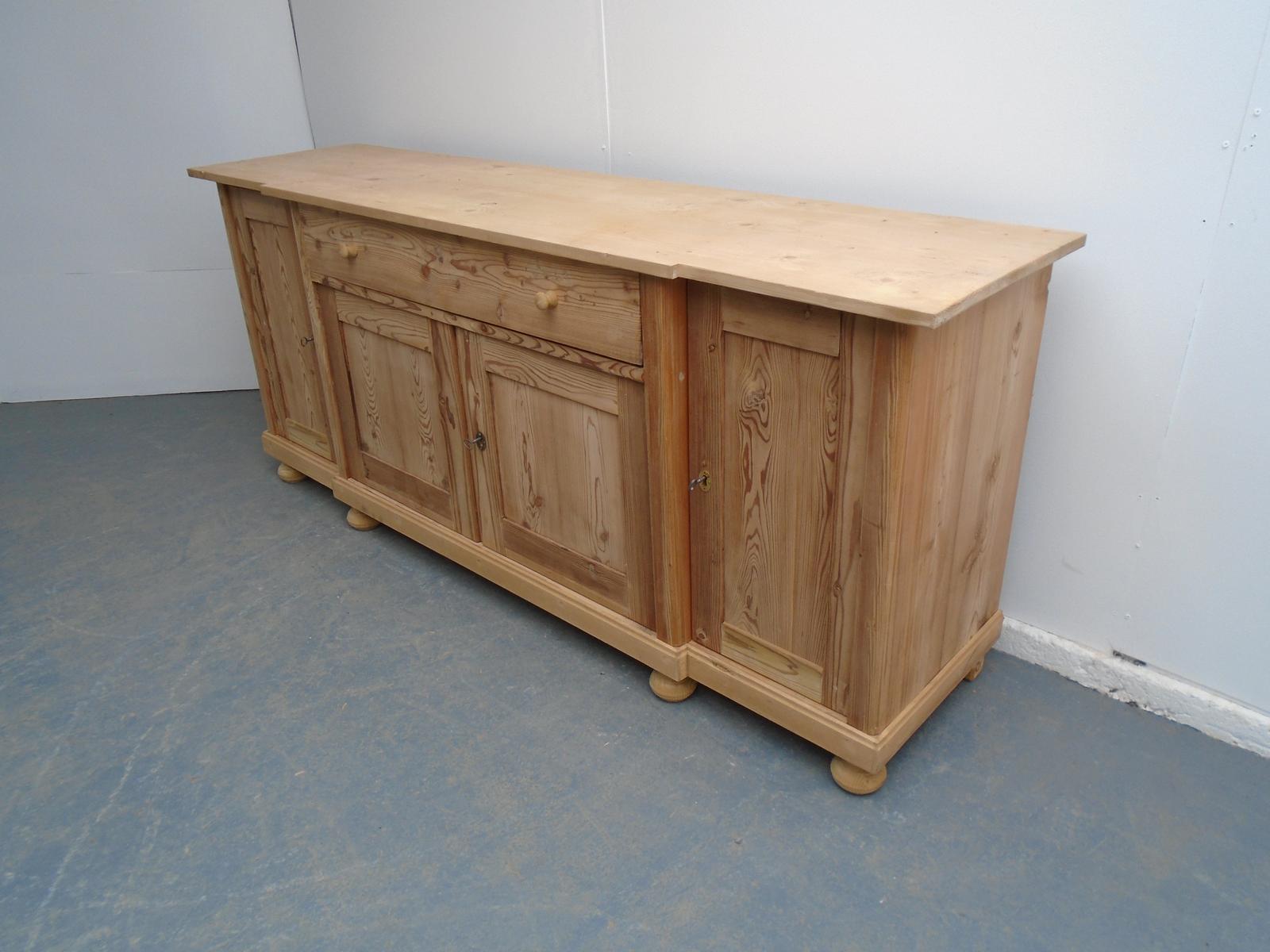 Low Breakfront Antique Pine Dresser Base / TV Stand to wax / paint