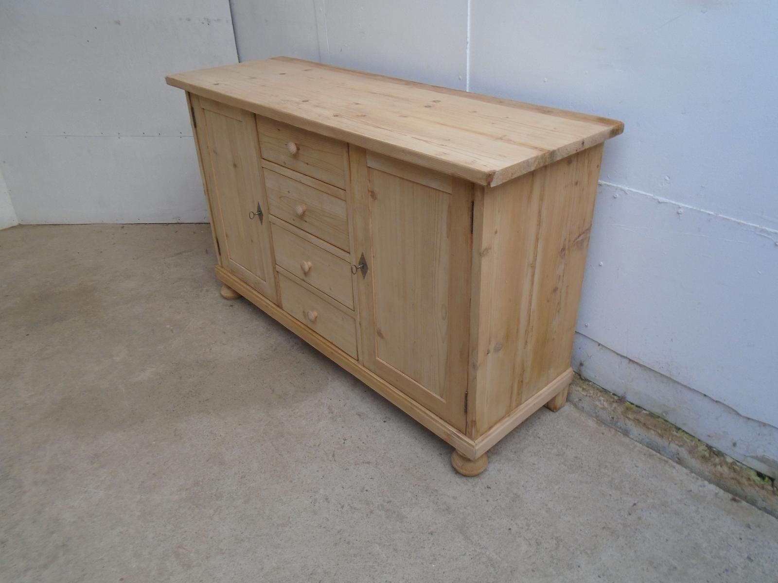 Low & Wide 2 Door 4 Drawer Antique Pine Kitchen TV Stand to wax / paint