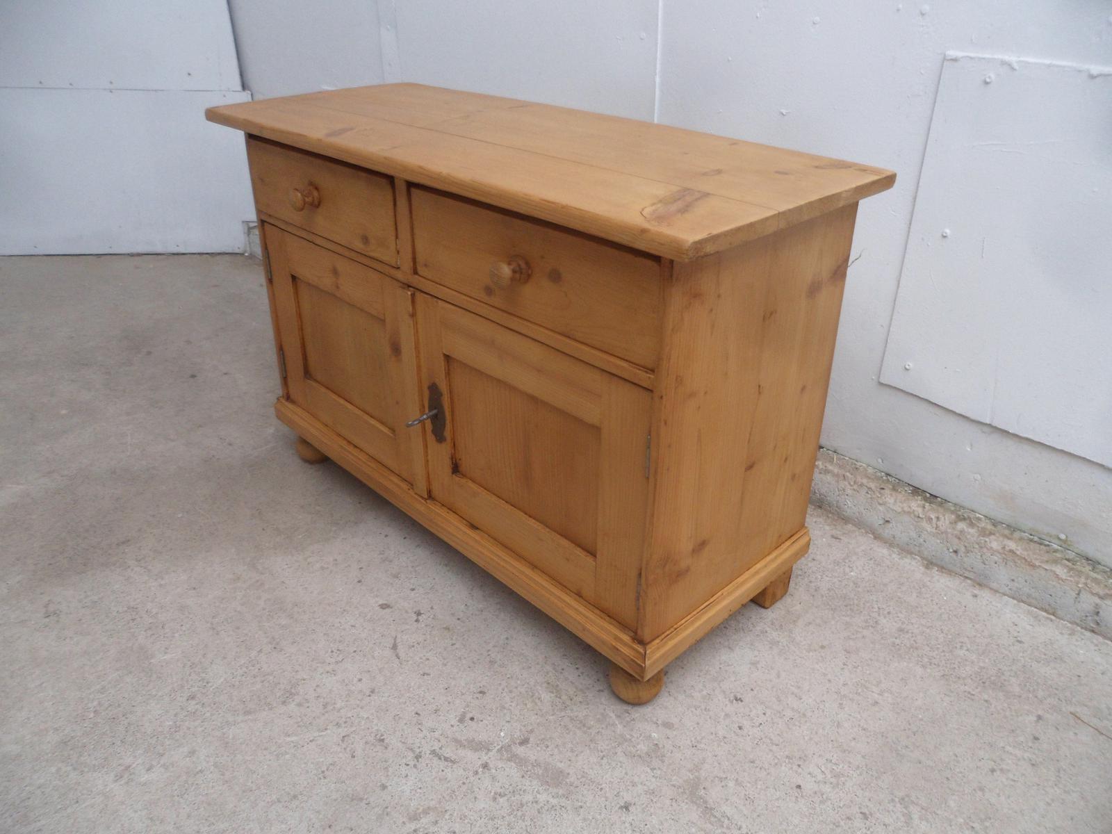 Low & Wide Antique Pine Waxed Bedside Cabinet / Sofa Table