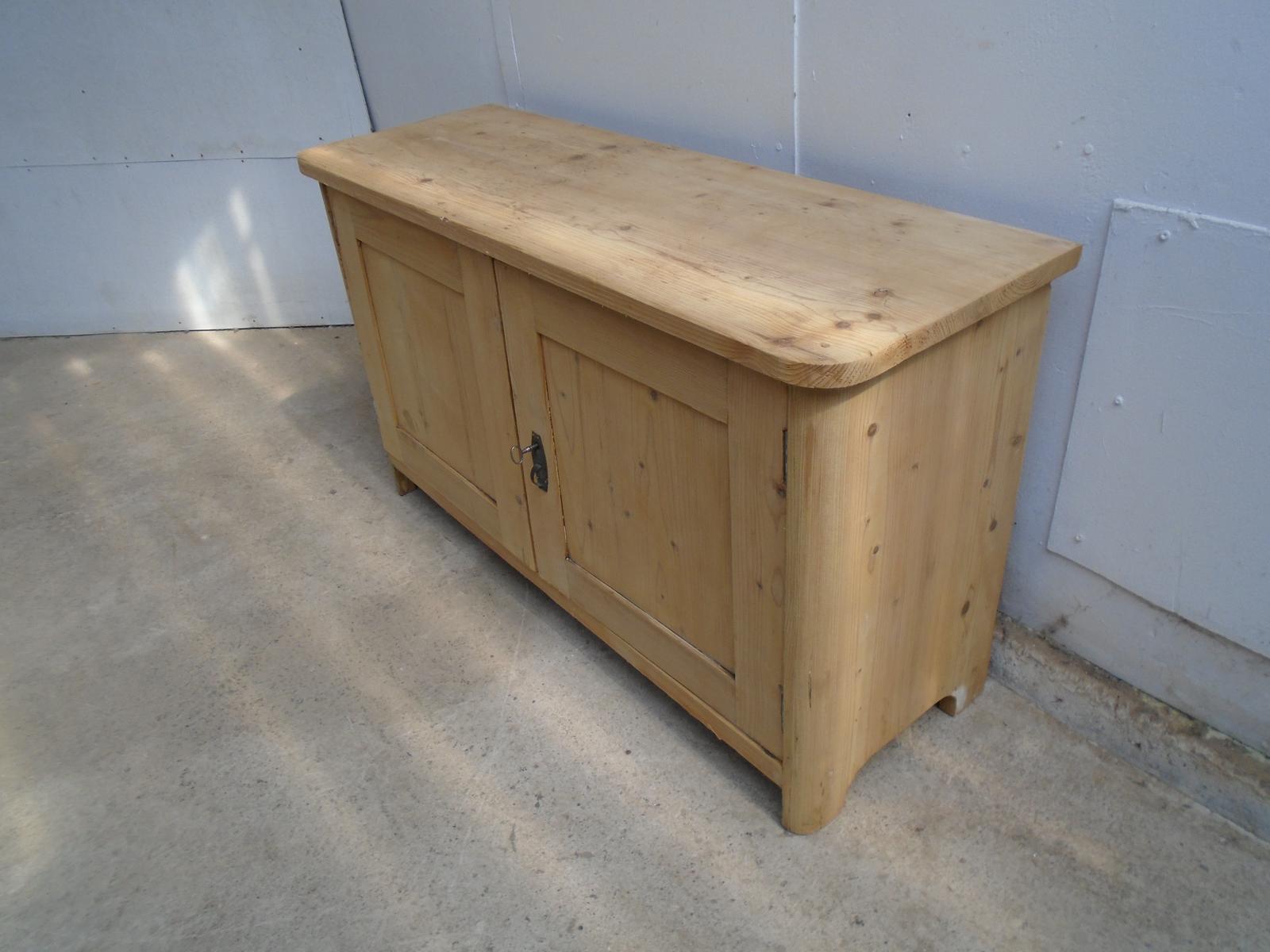 Low & Wide Victorian Antique Pine Hall Storage 2 Door Cupboard to wax / paint