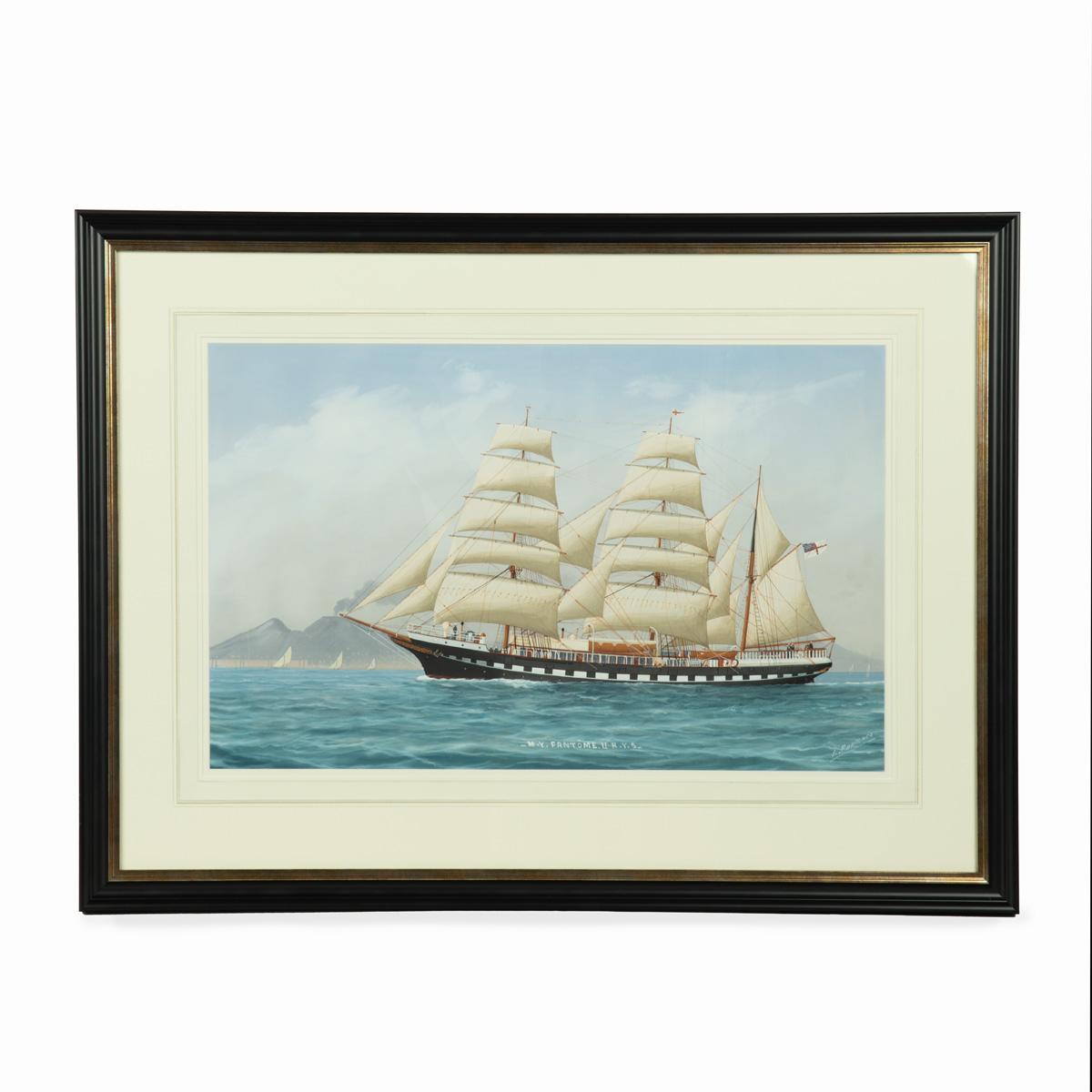 Luca Papaluca Gouache Painting of Royal Yacht Squadron Yacht ‘My Fantôme II, Rys’