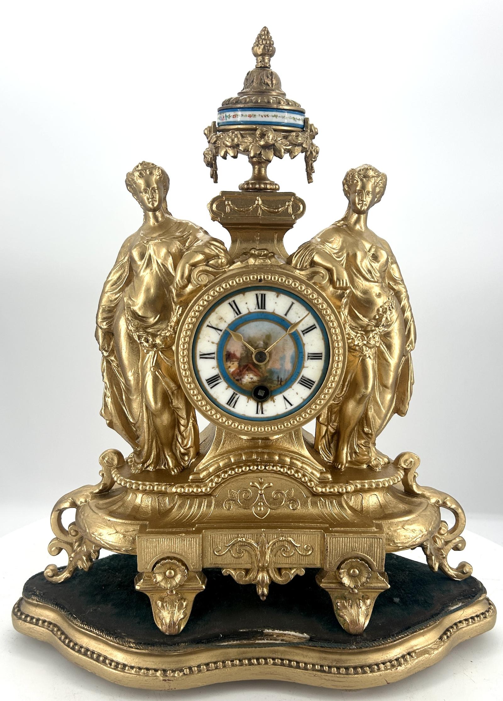 Luxurious Gilt Sevres Figural Mantle Clock ca.1880