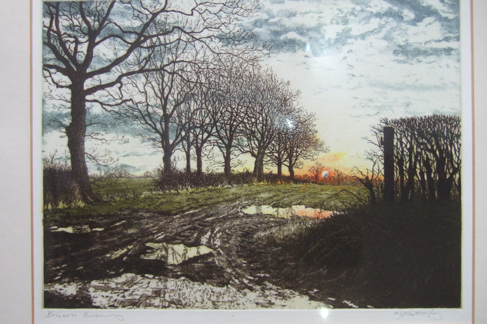 M. J. Mattingley Coloured Etching Entitled 'Bruern Evening'