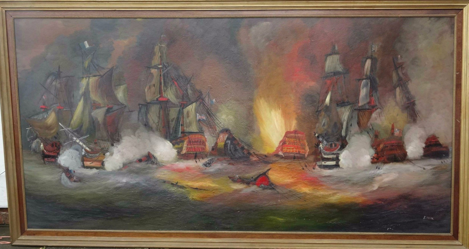 Magnificent 8.7ft x 4.7 ft Oil Painting 'Battle of Trafalgar' Seascape & Ships