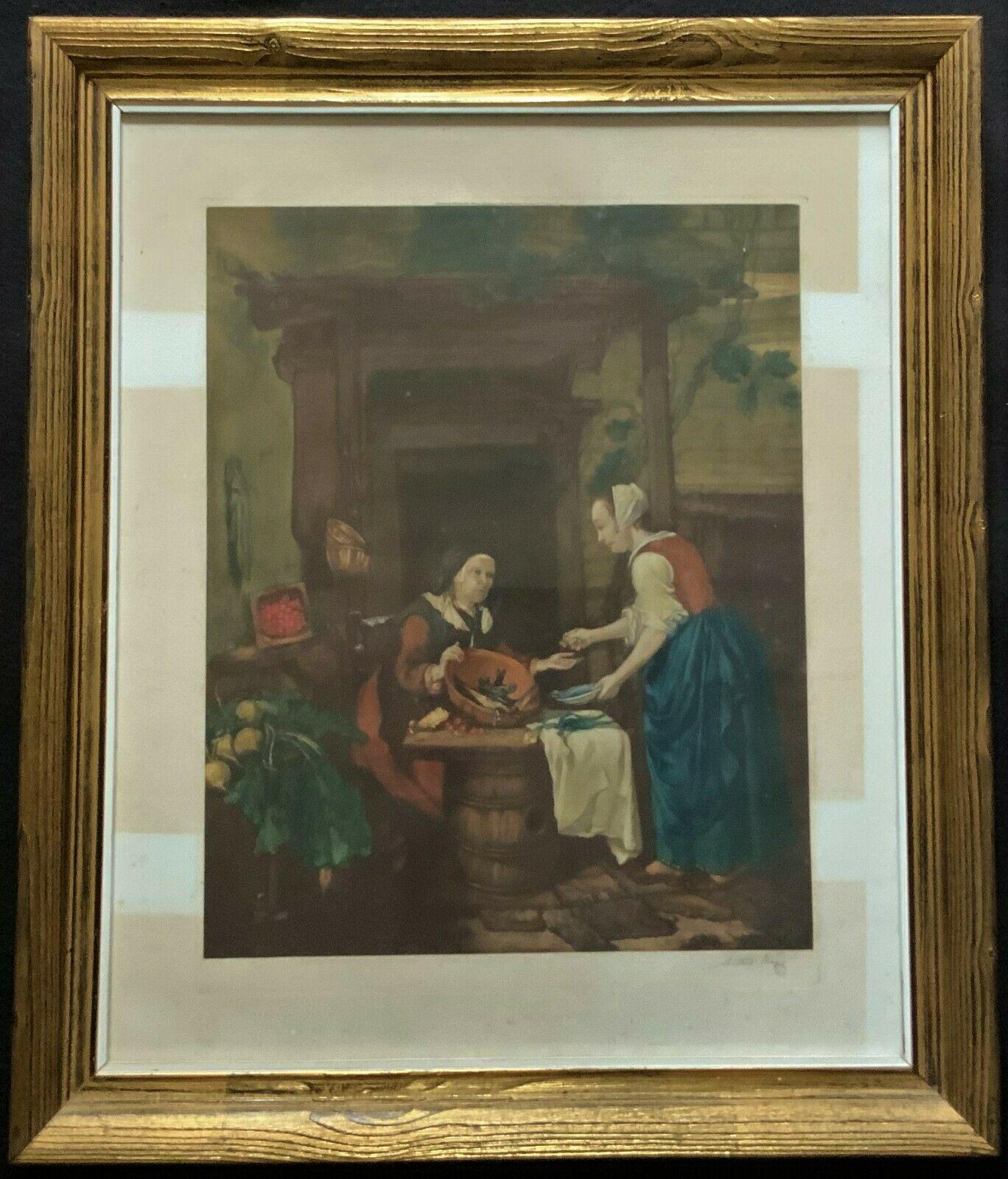 Magnificent Antique Coloured Mezzotint After Gabriel Metso