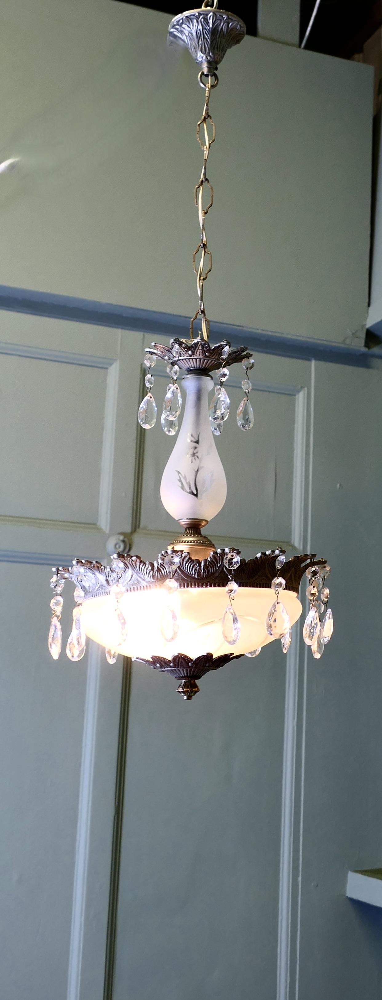 Magnificent Crystal Arts & Crafts Bowl Chandelier