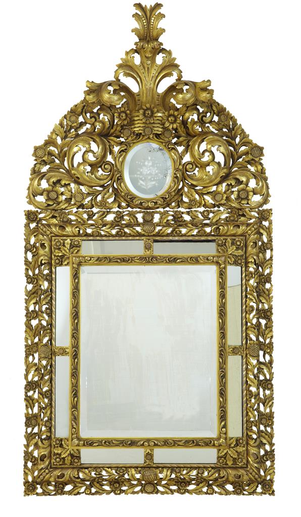 Magnificent Early 20th Century Carved Wood Baroque Influenced Cushion Mirror (1 of 8)
