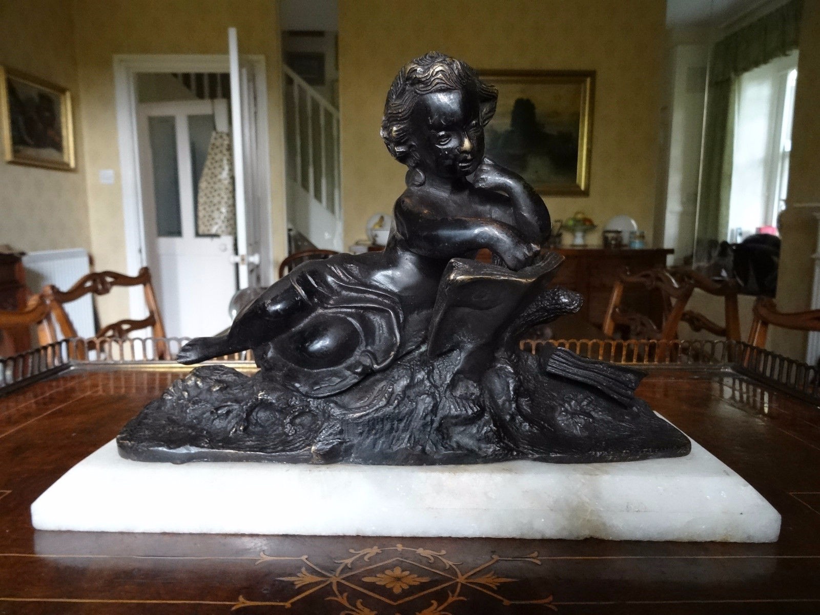 Magnificent Early 20th Century Solid Bronze & Marble Statue Figurine of a Boy