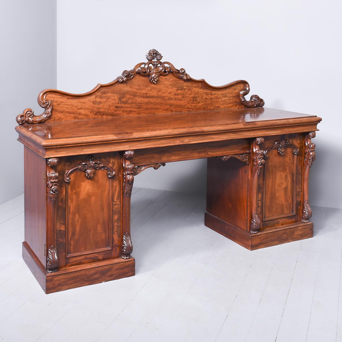 Magnificent, Finely Carved Mid Victorian Pedestal Sideboard in Flame Mahogany