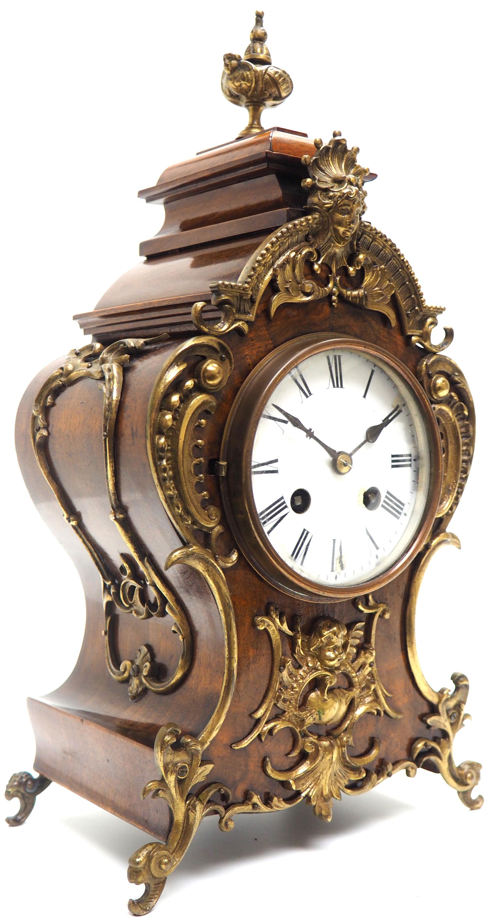 Magnificent French 8-day Mantle Clock Walnut Boulle Striking Mantle Clock (1 of 11)