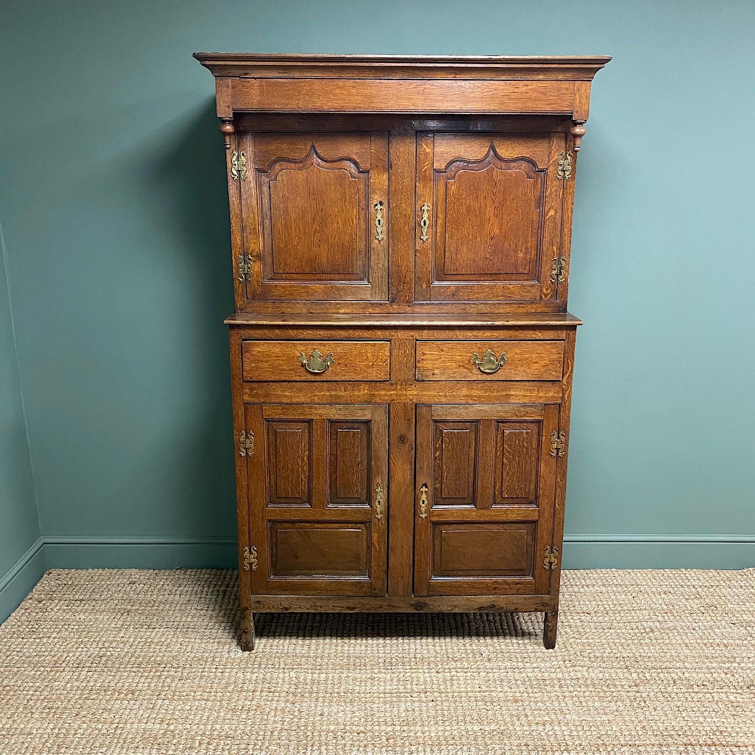 Magnificent Georgian Period Oak Cwpwrdd Deuddarn Cupboard