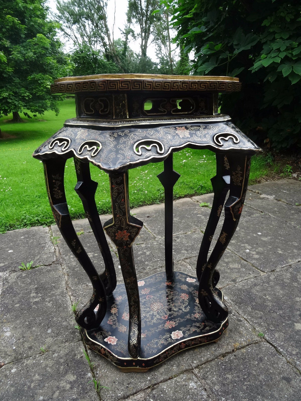 Magnificent Large 19th Century Chinese Chinoiserie Lacquered Table / Plant Stand