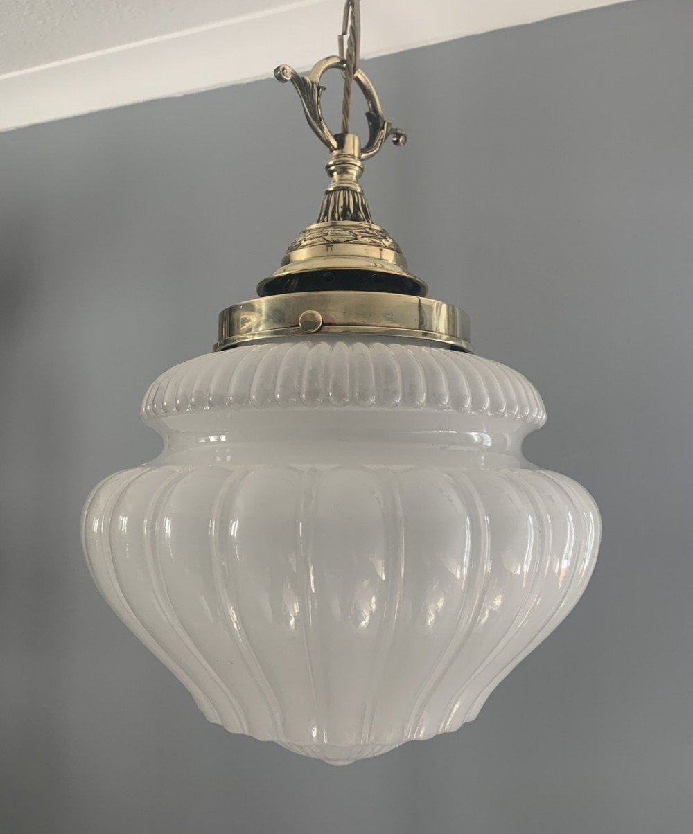 Magnificent Large Edwardian Opaque Ceiling Lamp, Shade, Rewired
