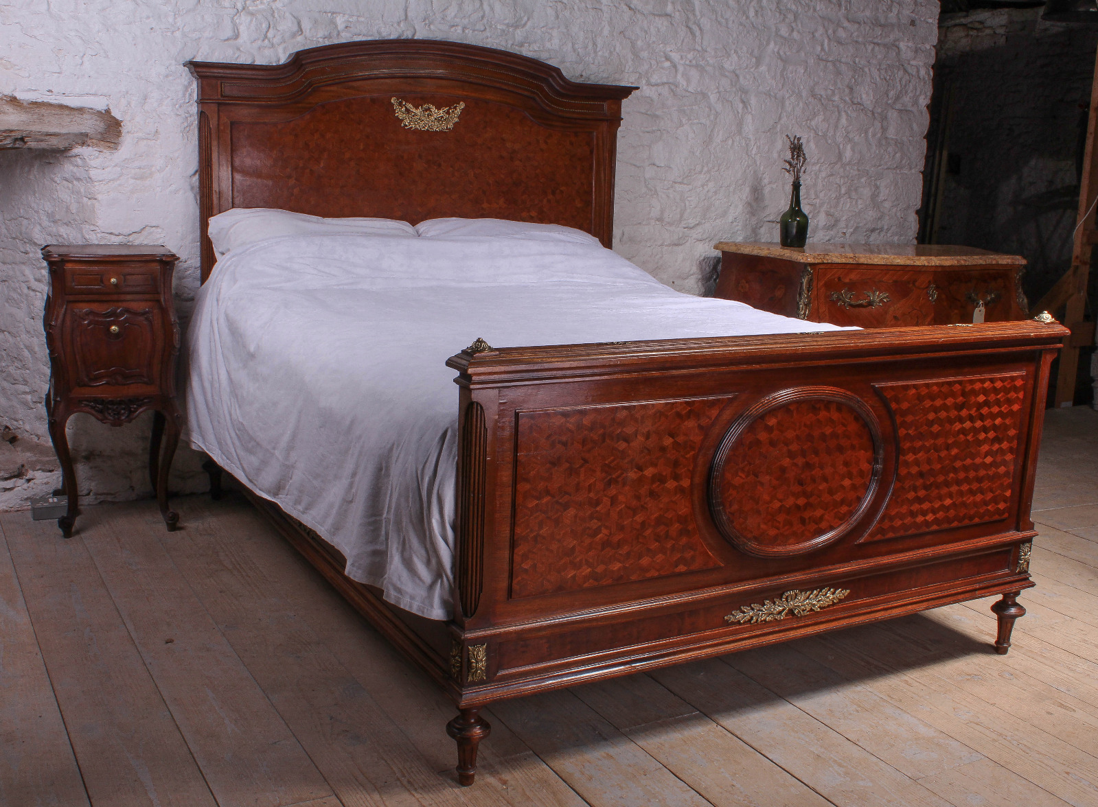 Magnificent Mahogany & Fruitwood Parquetry King Size Bed