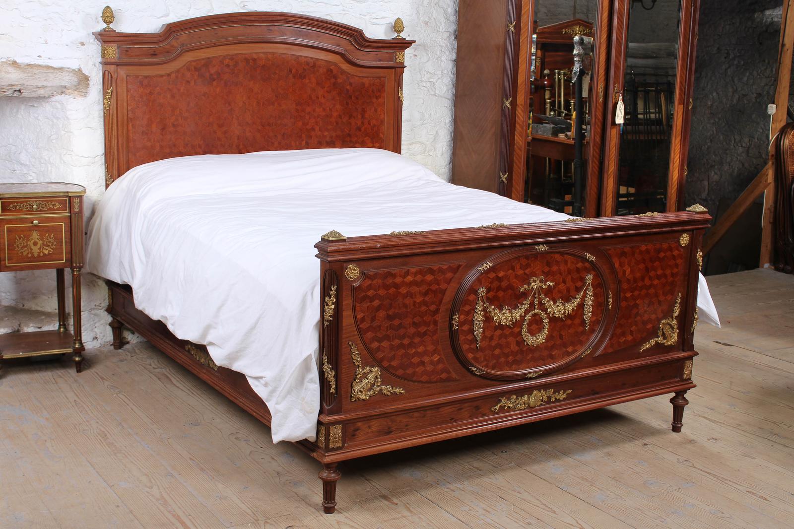 Magnificent Mahogany & Fruitwood Parquetry King Size Bed (1 of 7)