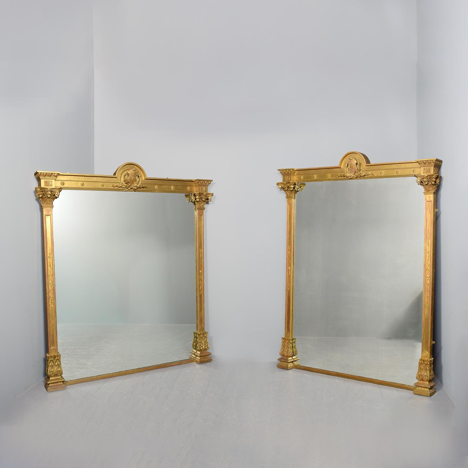 Magnificent Matched Pair of 19th Century Decorative Gilt Overmantel Mirrors