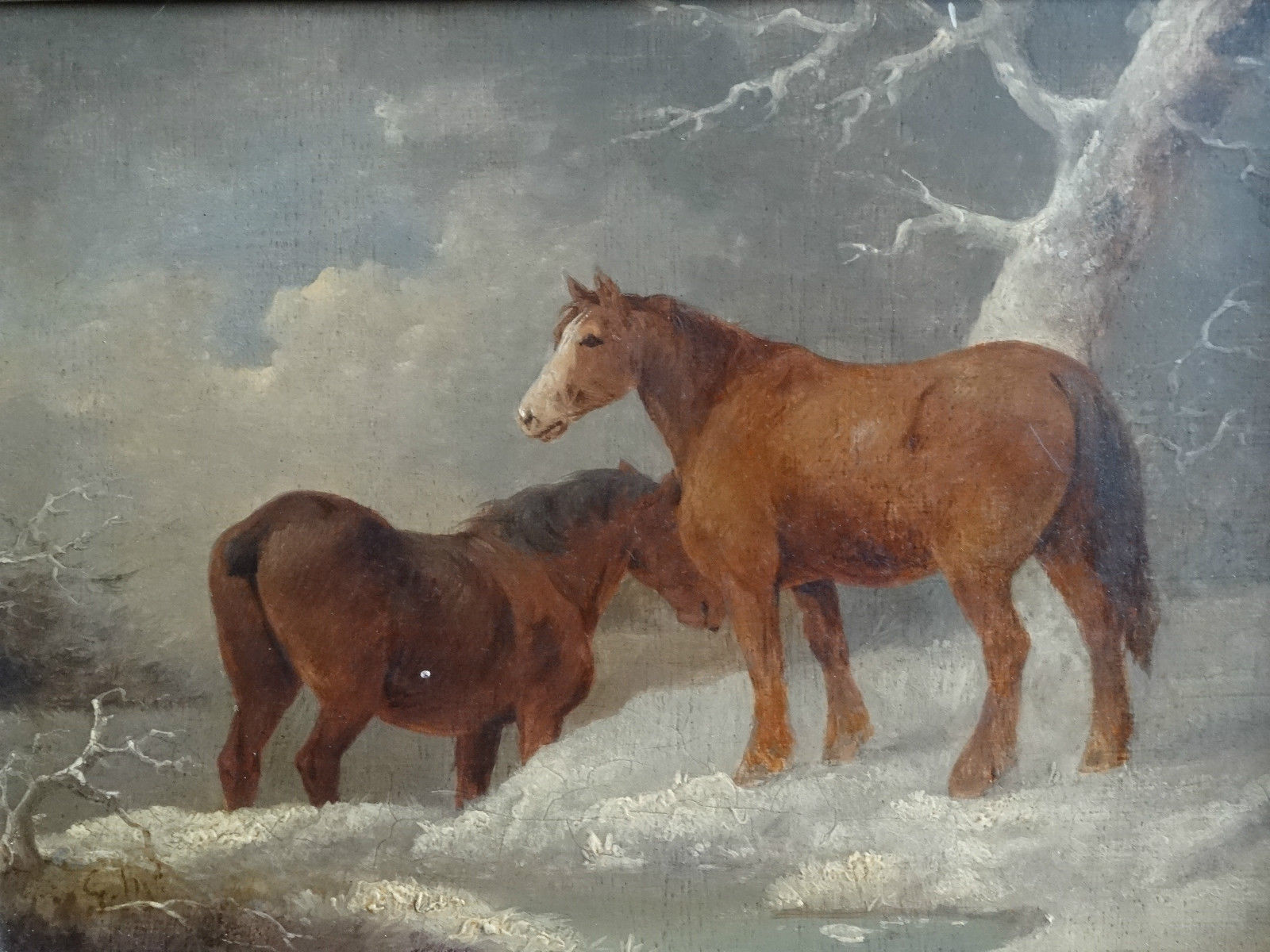 Magnificent Original 19th Century Horses in Winter Landscape after George Morland