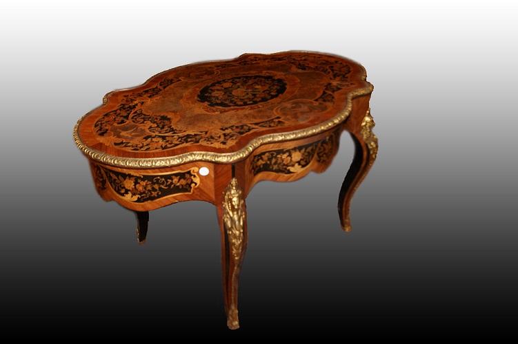 Magnificent Oval Center Table Richly Inlaid in Louis XV Style