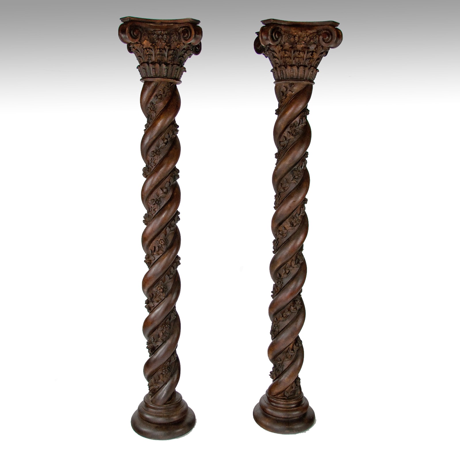 Magnificent Pair of 7ft Victorian Twisted Carved Corinthian Columns