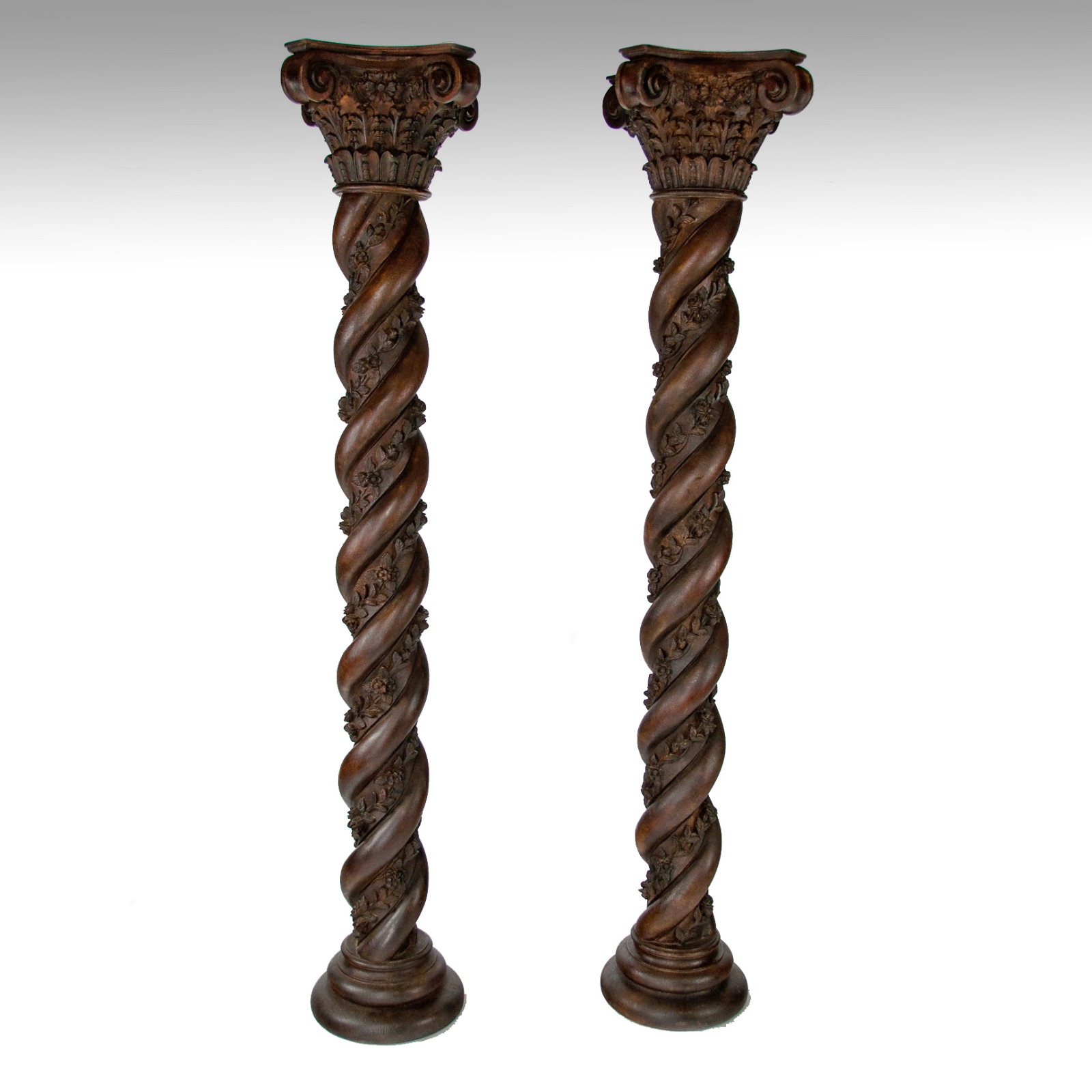 Magnificent Pair of 7ft Victorian Twisted Carved Corinthian Columns c.1880