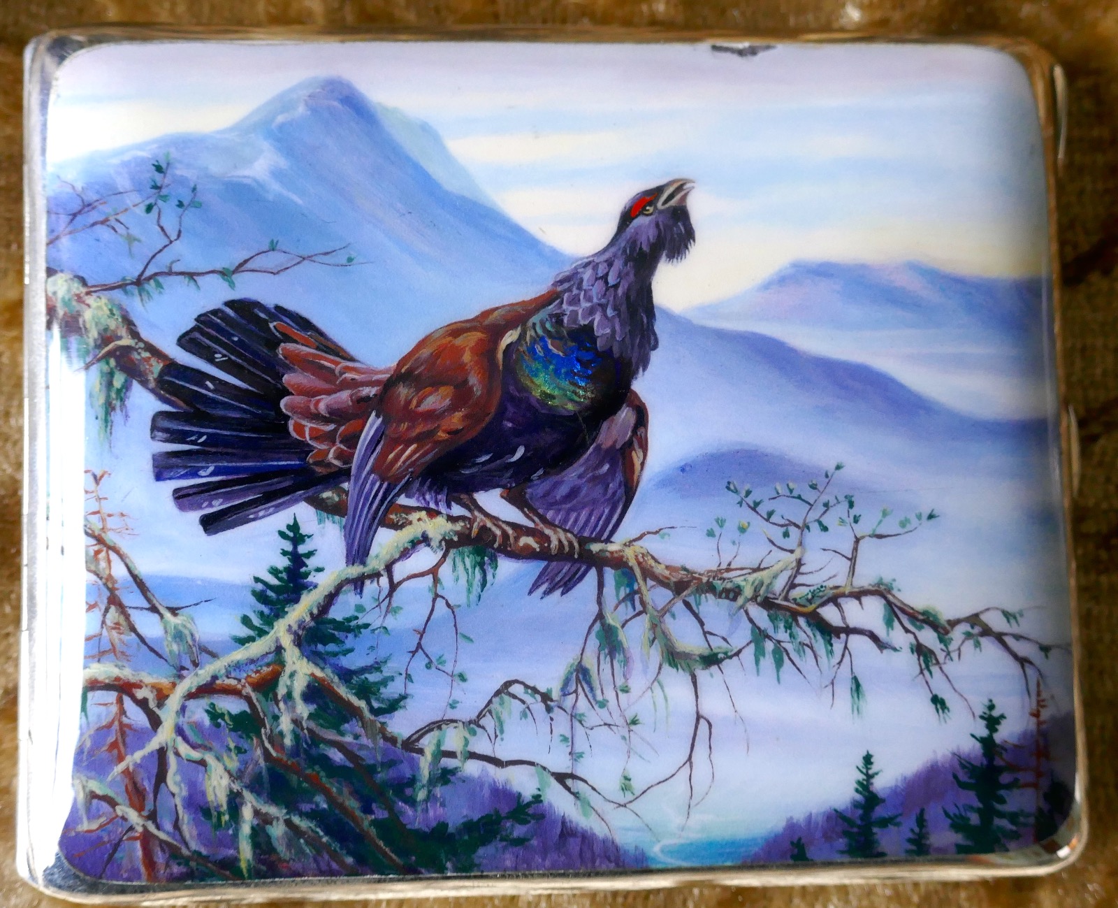 Magnificent Silver & Enamel Wild Game Scene Cigarette Case or Card Case