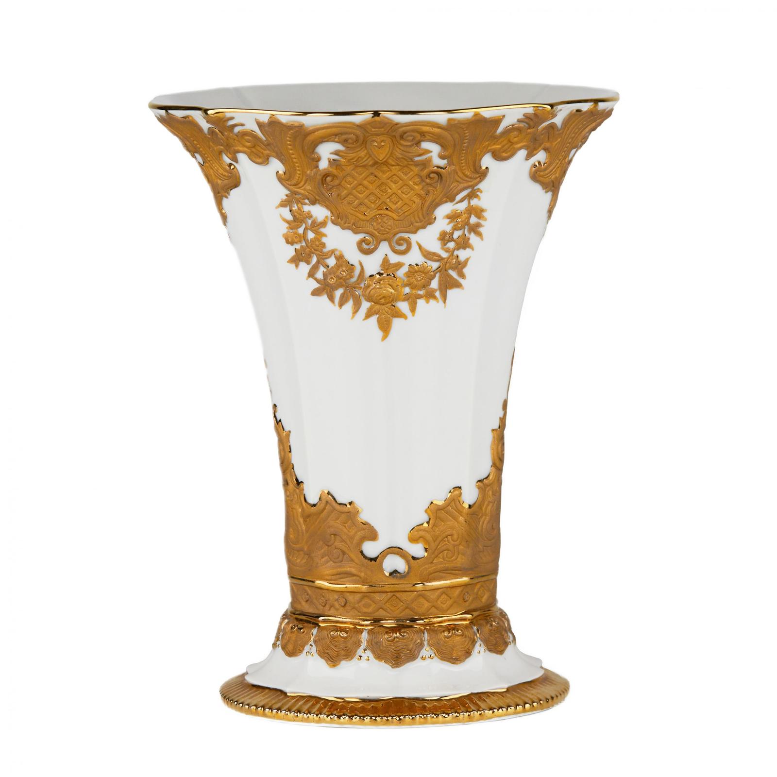 Magnificent vase with golden relief. Meissen. Turn of the 19th and 20th centuries.