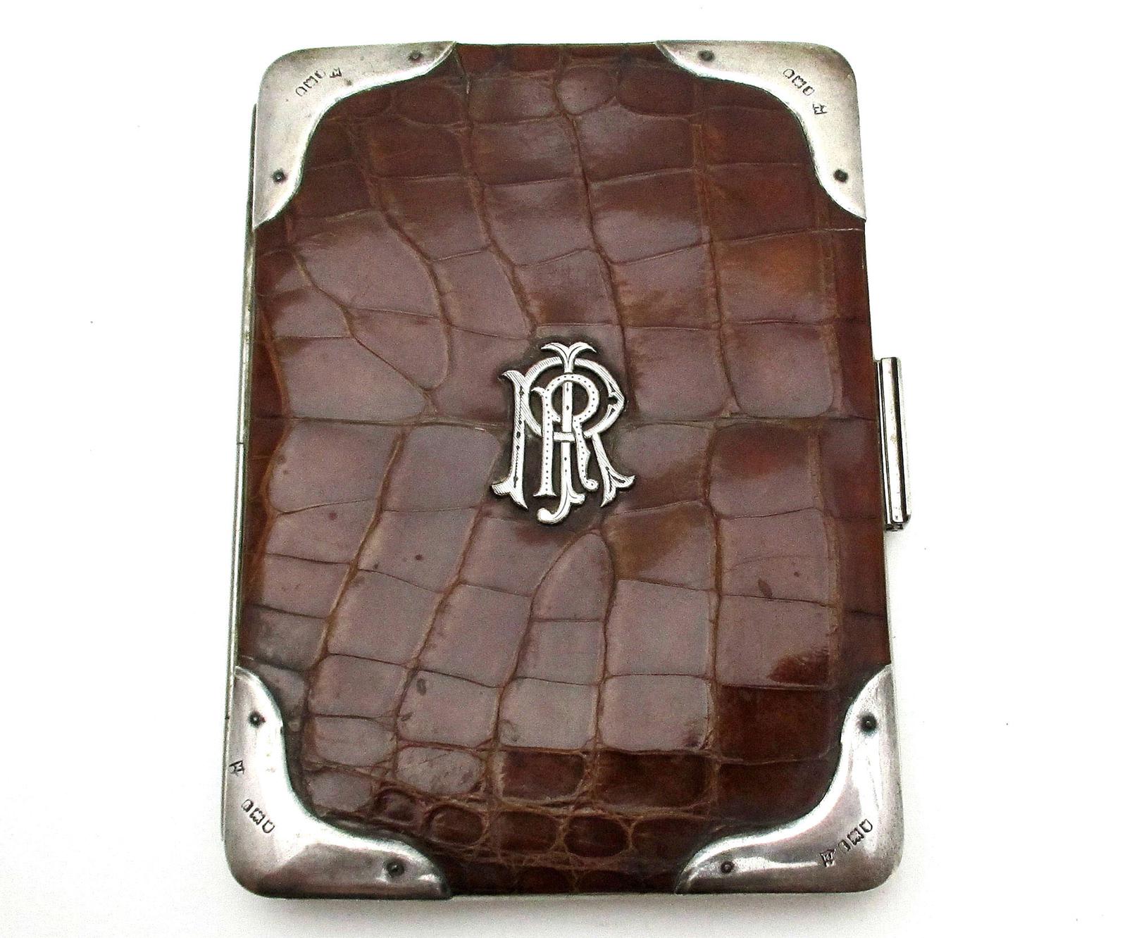 Magnificent Victorian Solid Sterling Silver Mounted Crocodile Skin Leather Antique Wallet Purse Card Stamp Case 1901