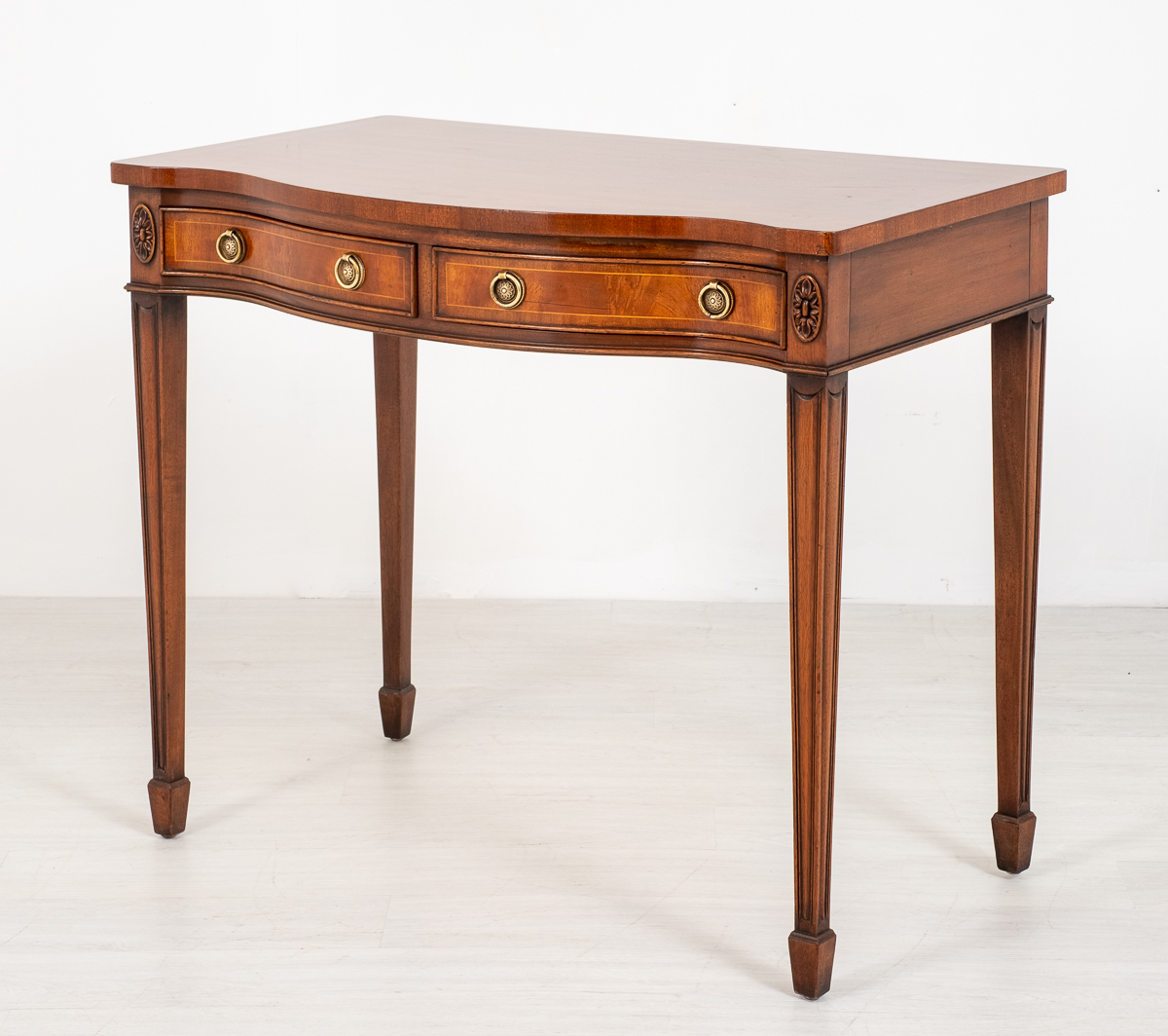 Mahogany 2 Drawer Serpentine Side Table c.1920 (1 of 7)
