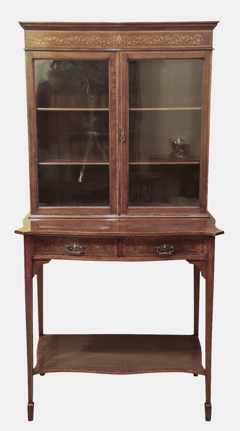 Mahogany And Marquetry Inlaid Sheraton Revival Cabinet (1 of 1)
