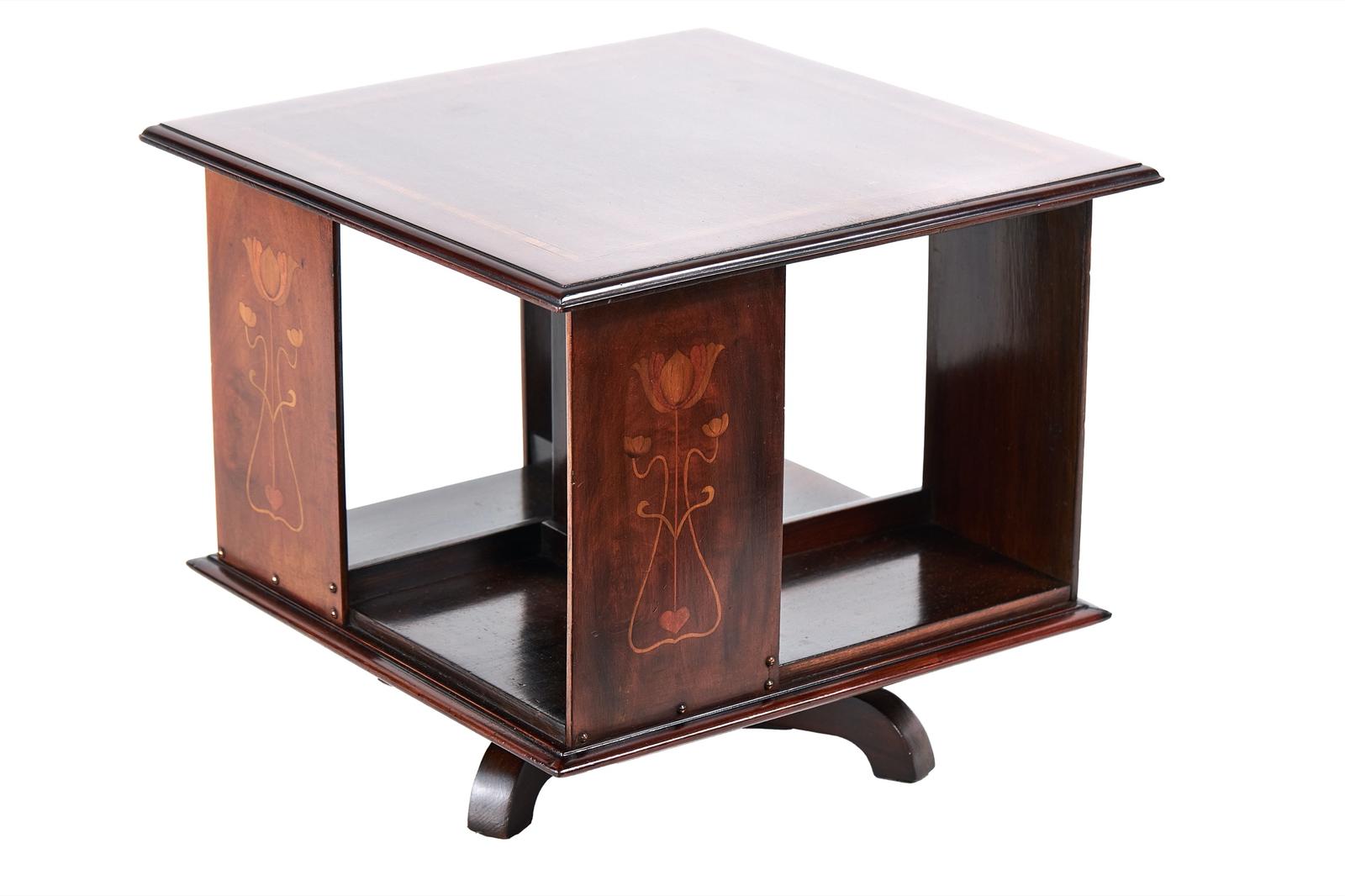 Mahogany Art Nouveau Inlaid Table Top Revolving Bookcase
