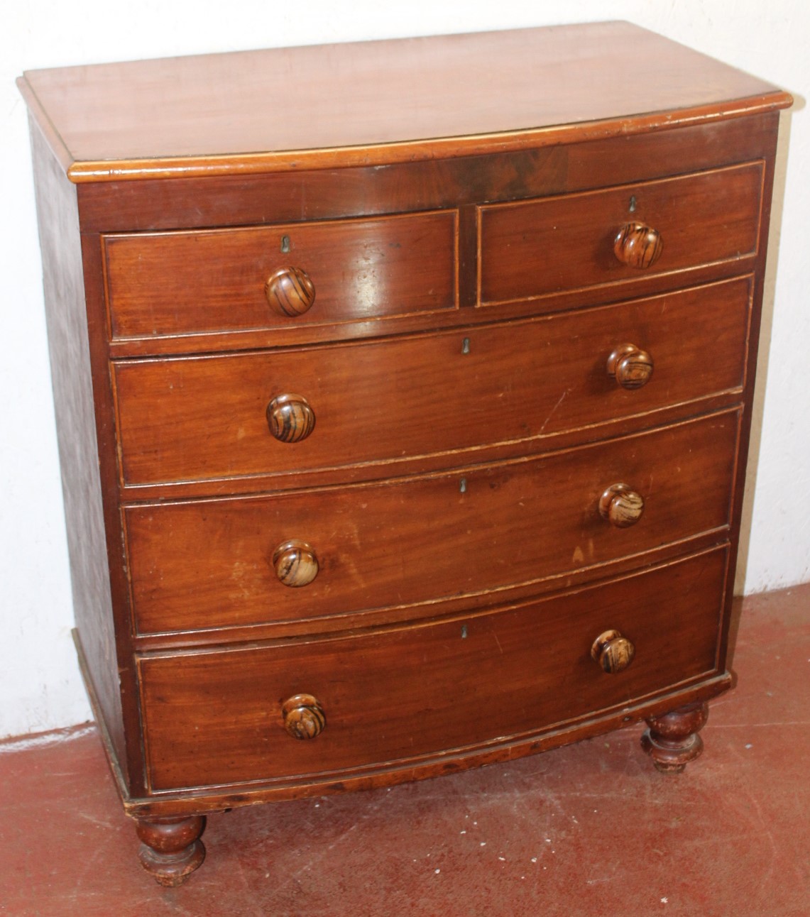 Mahogany Bow Chest of Drawers on Turned Feet c.1905