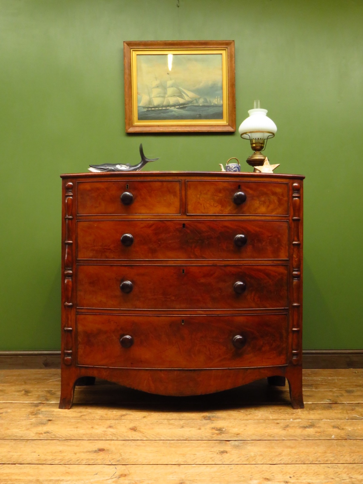 Mahogany Bow Chest of Drawers with Oak Lined Drawers