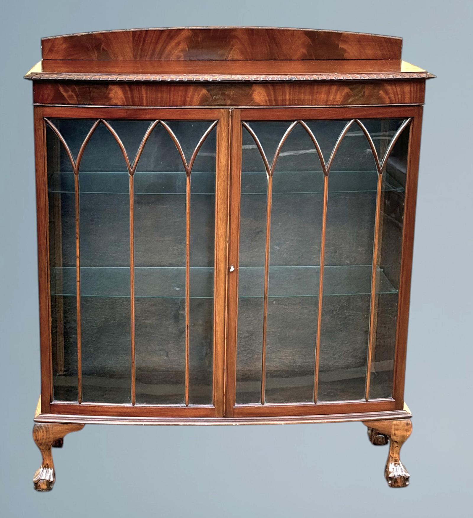 Mahogany Bow Front Ball & Claw Display Cabinet - Chippendale Style