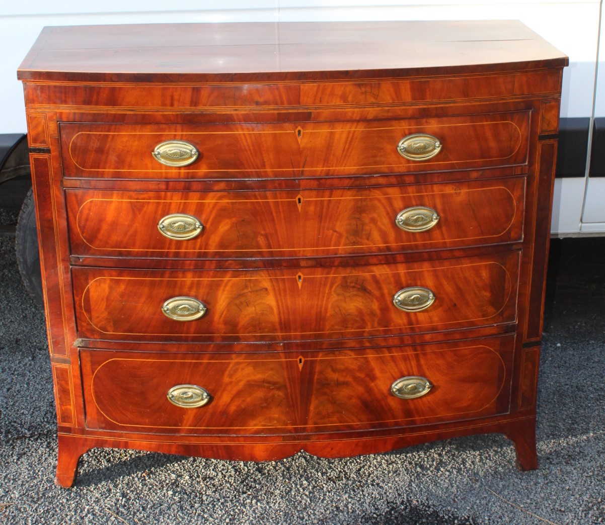 Mahogany Bow Front Chest Drawers with Brass Handles c.1830