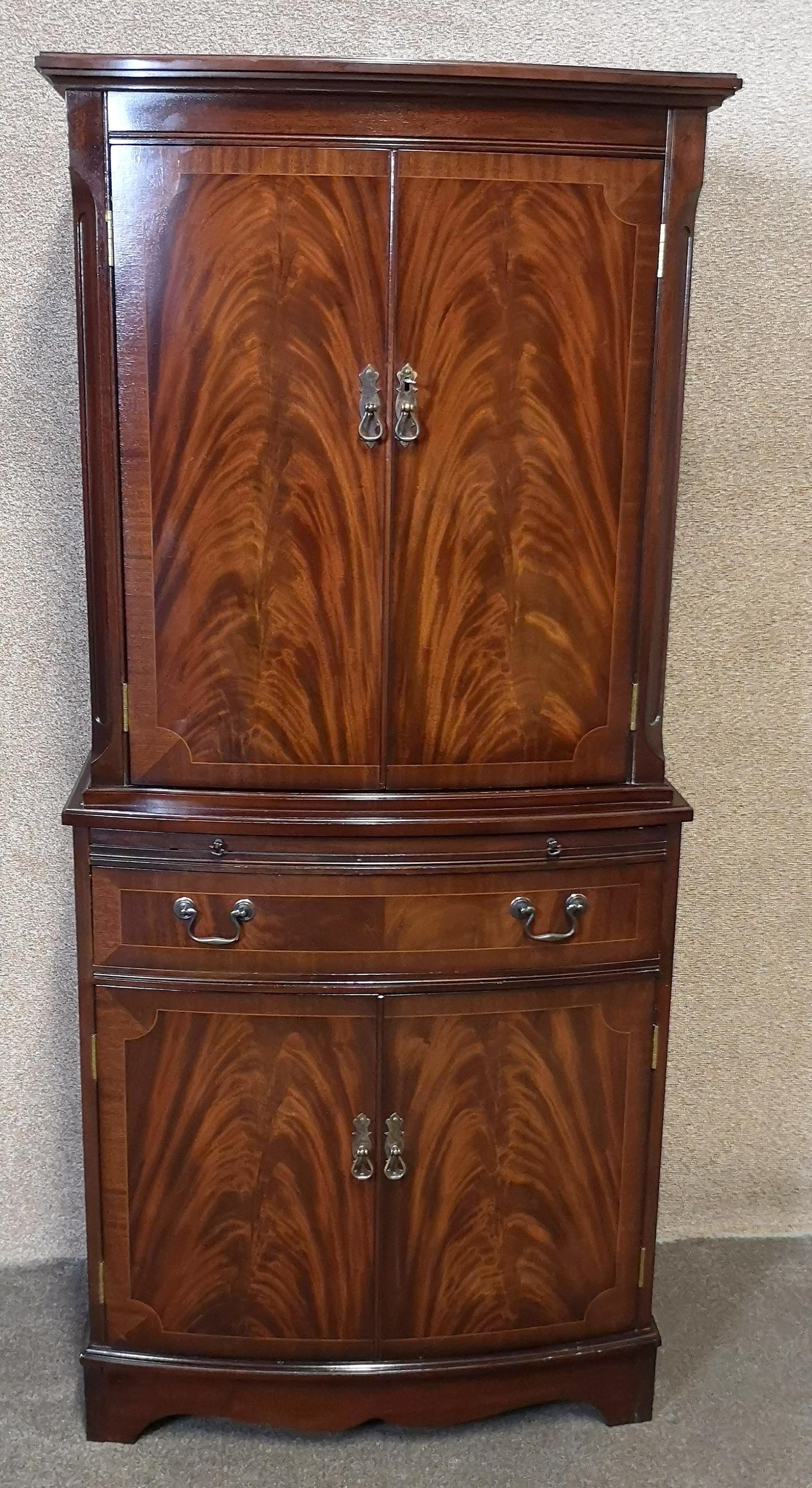 Mahogany Bow Front Cocktail Drinks Cabinet / Strongbow Furniture