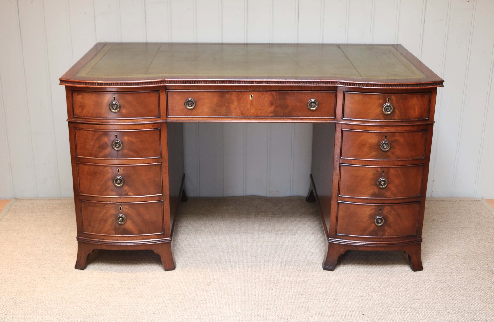 Mahogany Bow Front Pedestal Desk c.1920 (1 of 1)