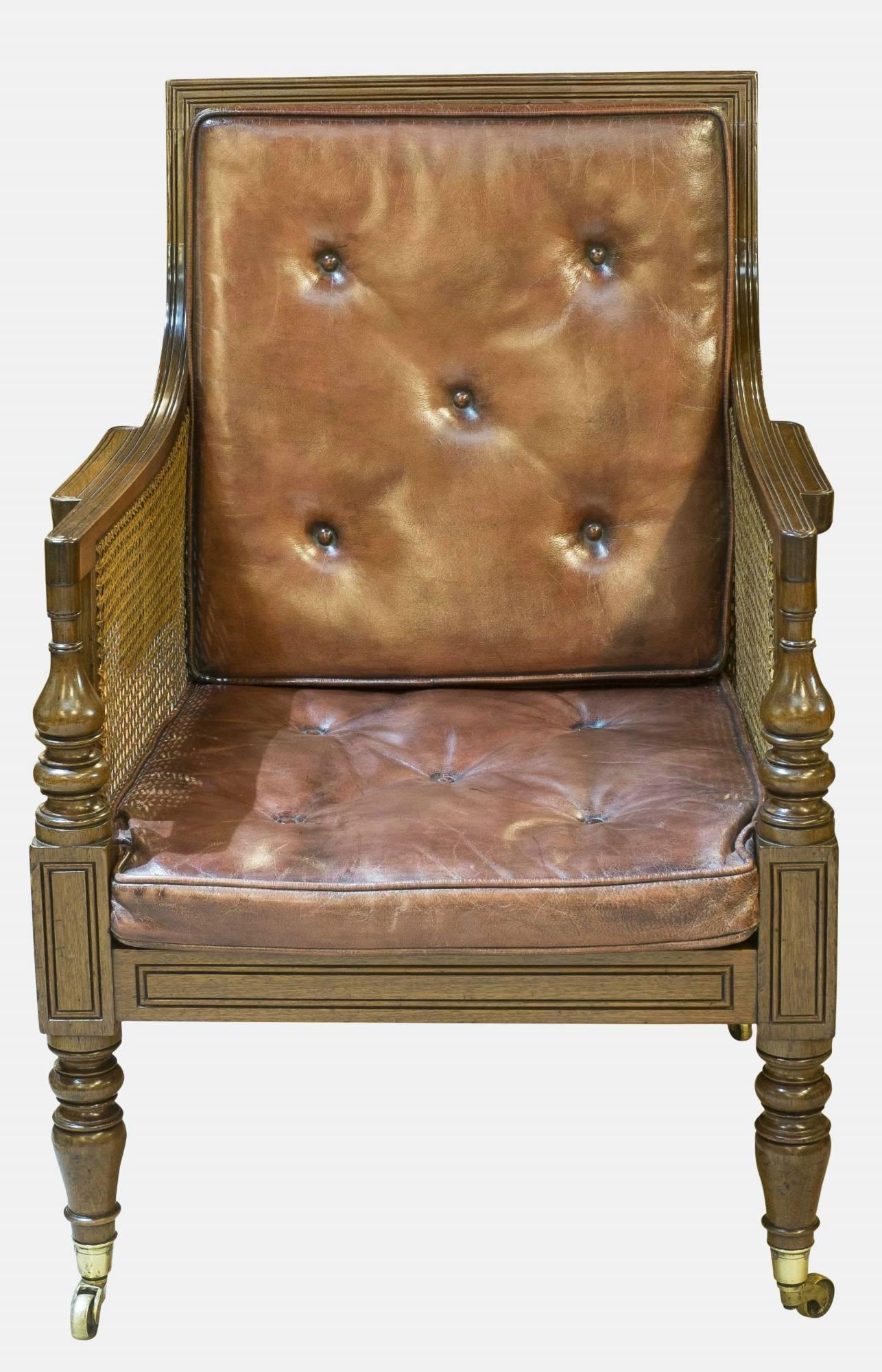 Mahogany Caned Library Bergere