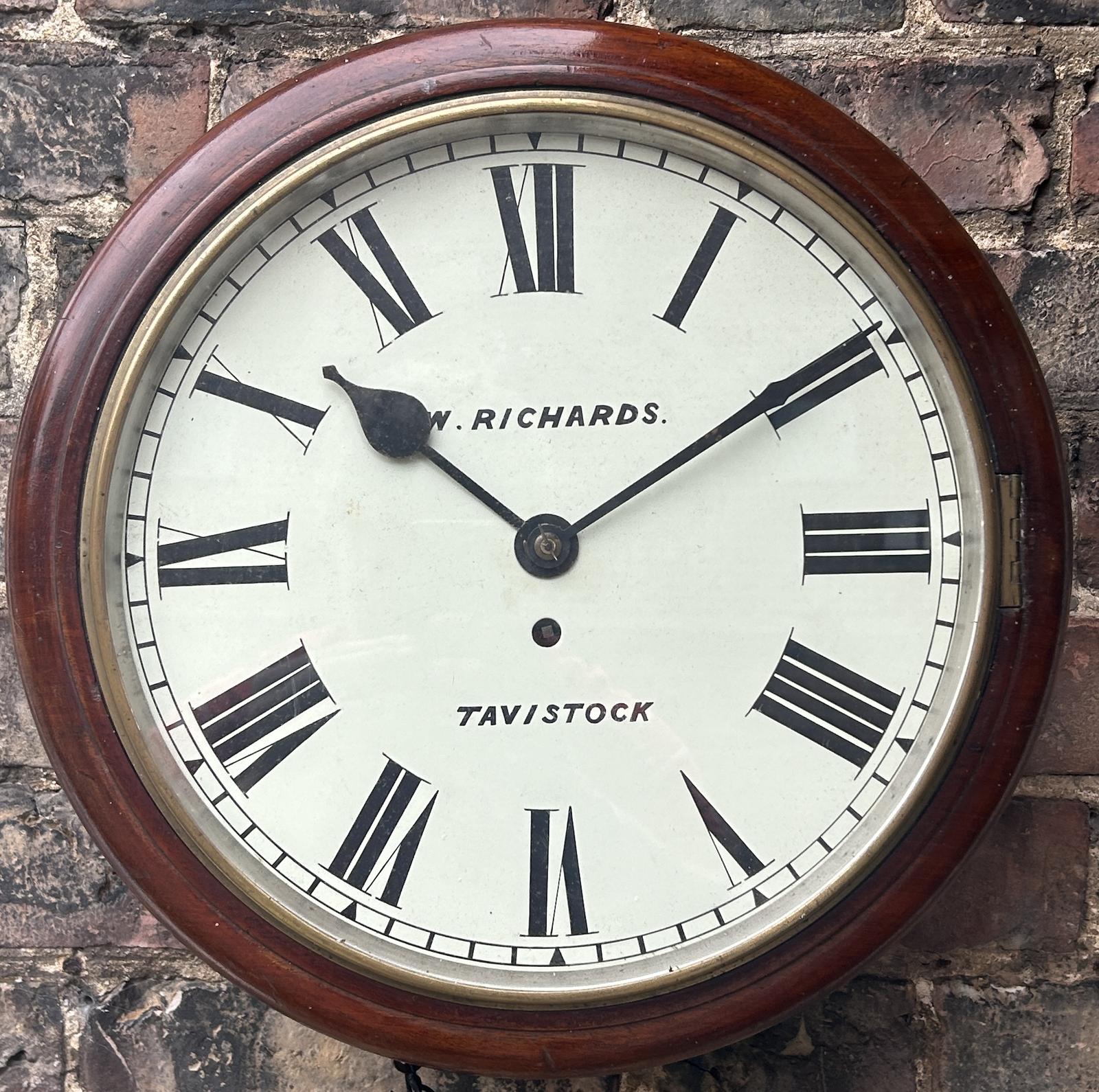 Mahogany Case Single Fusee Dial Clock by Richardsons of Tavistock - ca 1890